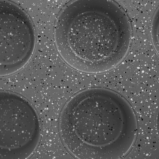 Le traitement spécial en granit minimise l’adhérence et permet de cuire avec un minimum de graisse. Les muffins se démoulent facilement sans être abîmés.