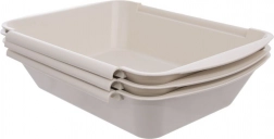 Chaque bol a une capacité de 1,5 litre et, grâce à ses dimensions compactes de 26 × 20 × 5,5 cm, il convient aux plans de travail standards. Après usage, emboîtez-les pour économiser de l’espace. Le plastique résistant de couleur beige est facile à nettoyer, compatible avec le lave-vaisselle et le micro-ondes.