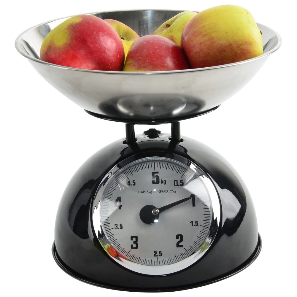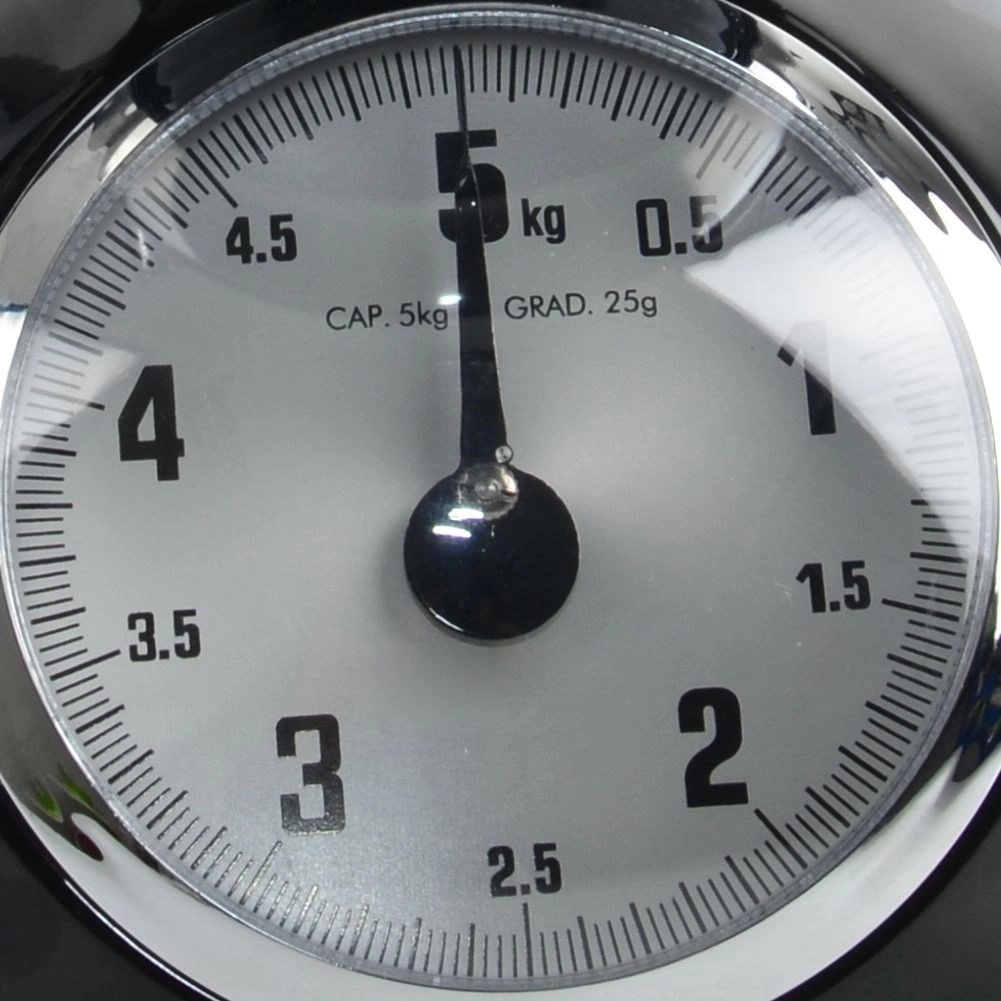 Cette balance mécanique au style rétro est un assistant fiable pour toute cuisine. Son corps métallique robuste noir et le bol en inox garantissent longévité et entretien facile. Grâce au cadran analogique avec marquage clair jusqu’à 5 kg, vous pesez facilement fruits, légumes, ingrédients secs et viandes.
