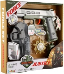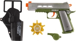 • Le set comprend : En plus du pistolet, un étui, un badge de shérif et un sifflet.