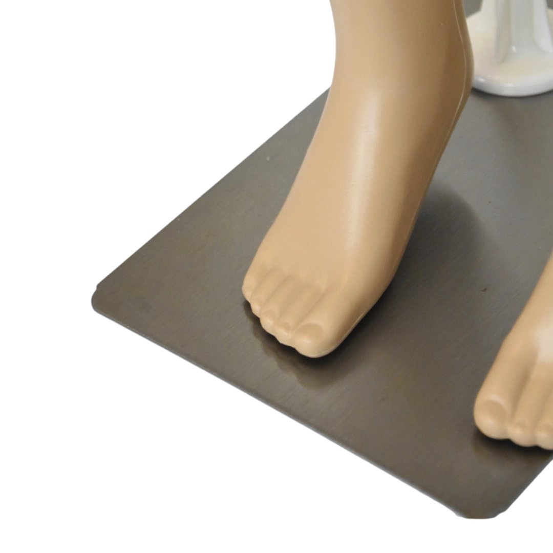 La construction modulaire en 3 parties (torse + deux bras amovibles) permet un habillage rapide ainsi qu’un transport et un stockage aisés. La base stable avec tige de fixation maintient le mannequin fermement en place, un atout en vitrine comme lors d’événements très fréquentés.