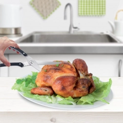 Ces ciseaux pratiques pour volaille sont conçus pour découper facilement poulet, canard ou dinde — crus, rôtis ou grillés. Les lames tranchantes en acier inoxydable viennent à bout de la peau et des os plus fins, tandis que les poignées ergonomiques en plastique résistant assurent une prise sûre et un bon effet de levier.