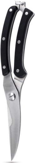 Ciseaux de cuisine robustes pour volaille en acier inoxydable de 24,5 cm qui facilitent la découpe des viandes crues comme rôties. Ils disposent de poignées ergonomiques, de lames en acier inoxydable tranchantes, d'un verrou de sécurité pour un rangement simple et sûr, et d'une construction solide pour une longue durée de vie.