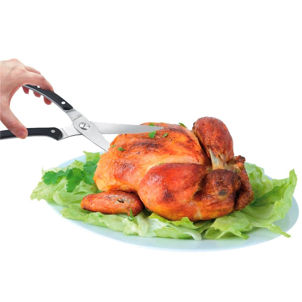 Assistant idéal pour préparer un poulet rôti ou grillé – coupes nettes sans émietter la viande.