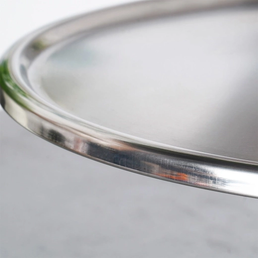 Élégant plateau sur pied en acier inoxydable, diamètre 33 cm et hauteur 13 cm, pour une présentation stylée de gâteaux, desserts et douceurs. Acier inoxydable résistant de couleur argent, entretien facile et compatible lave-vaisselle. Idéal à la fois comme centre de table décoratif et comme accessoire pratique pour le service quotidien.