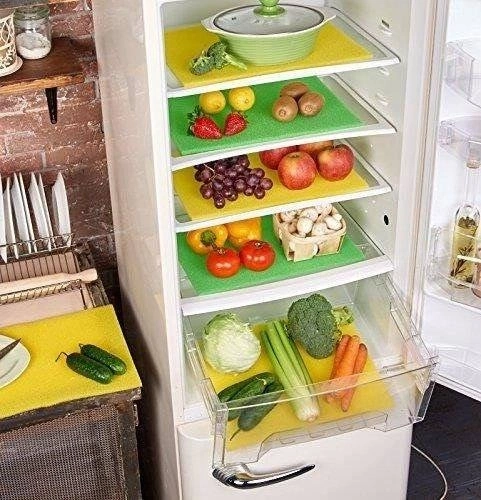 Ce tapis pratique pour réfrigérateur protège bacs et clayettes, améliore l’hygiène et prolonge la fraîcheur des fruits et légumes. Grâce à sa structure en mousse PU, le fond reste sec, les aliments ne glissent pas et l’air peut circuler librement.