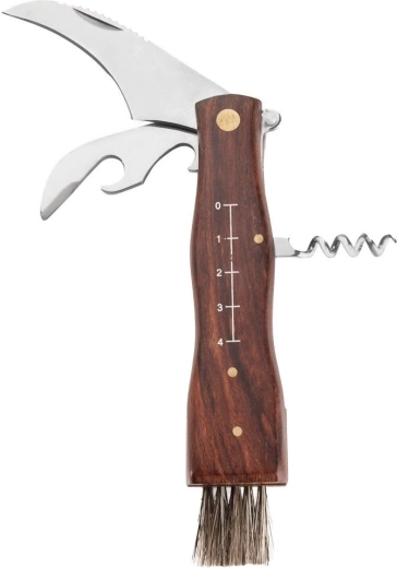 Lame incurvée, brosse de nettoyage, règle 1–4 cm, décapsuleur, tire-bouchon