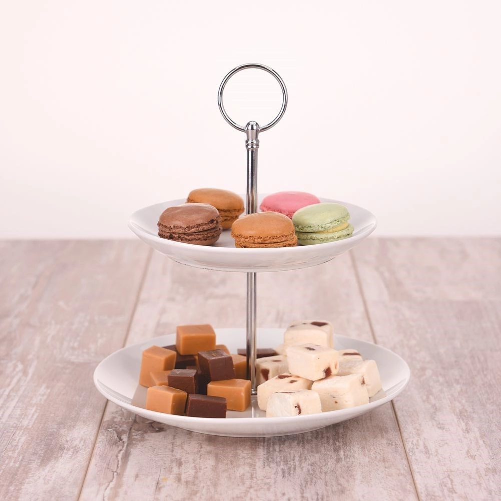 Grâce à ses deux niveaux, vous optimisez l’espace et exposez clairement vos gourmandises. Son design classique s’harmonise aisément avec toute vaisselle. Entretien facile et toucher agréable font de ce présentoir un excellent choix pour la maison comme pour le catering professionnel.