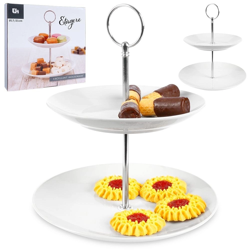 L’assiette supérieure de 17 cm et l’inférieure de 21 cm offrent suffisamment d’espace pour les desserts comme pour les en-cas salés, tout en économisant de la place sur la table.