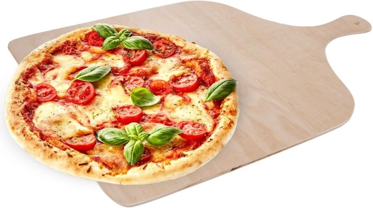 Pelle à pizza en bois pratique pour un transfert, une découpe et un service faciles. Grâce à sa conception en bois légère et résistante, vous insérez et retirez la pizza du four en toute simplicité. Elle possède une large surface plane, une poignée pratique avec œillet de suspension et un format universel de 41,5 × 29,5 × 0,5 cm. Convient aussi pour le pain, les tartes et autres pâtisseries.