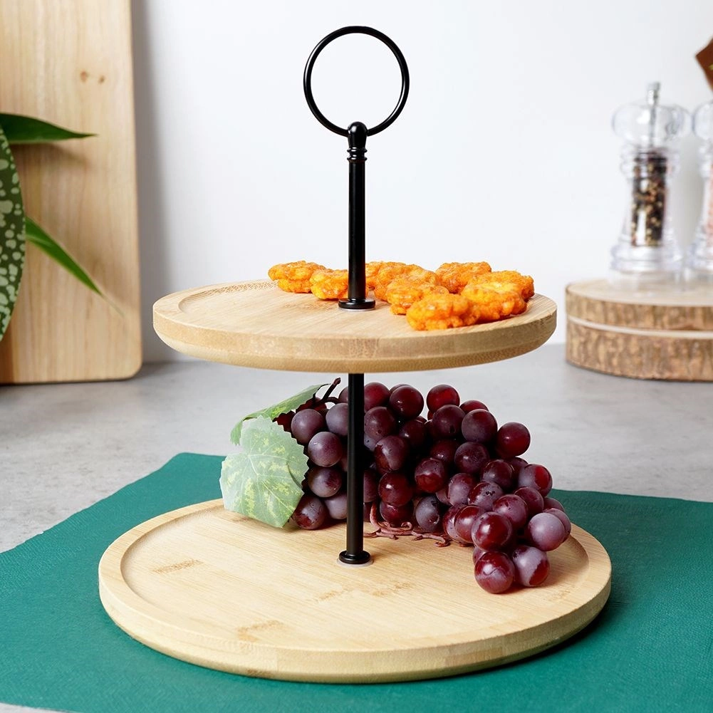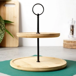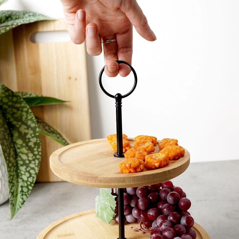 Offrez à votre table un accessoire élégant : un plateau à deux niveaux en bambou naturel avec une structure métallique robuste de couleur noire. Idéal pour cupcakes, biscuits, mini desserts, fruits et amuse-bouches salés. Les deux niveaux économisent de la place tout en permettant une présentation captivante.