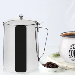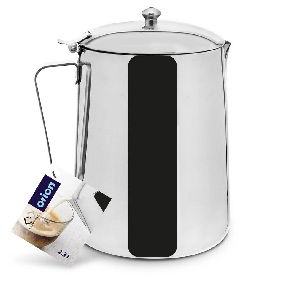 Élégant pichet en acier inoxydable avec couvercle d’une capacité de 2,3 l pour servir le café, le thé et autres boissons. Grâce à l’acier inoxydable de qualité, à sa anse confortable et à son bec verseur profilé, il offre un service facile et sécurisé. Le couvercle aide à garder les boissons chaudes plus longtemps et protège le contenu des impuretés.