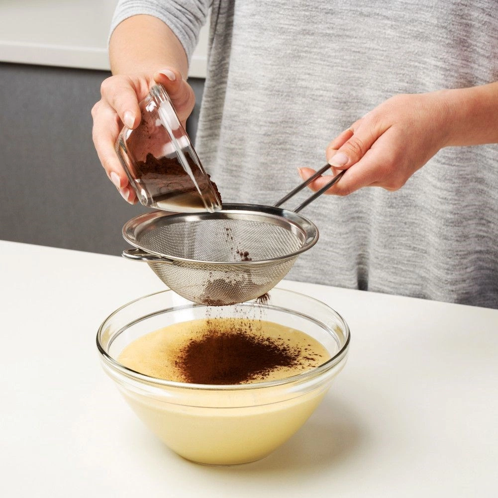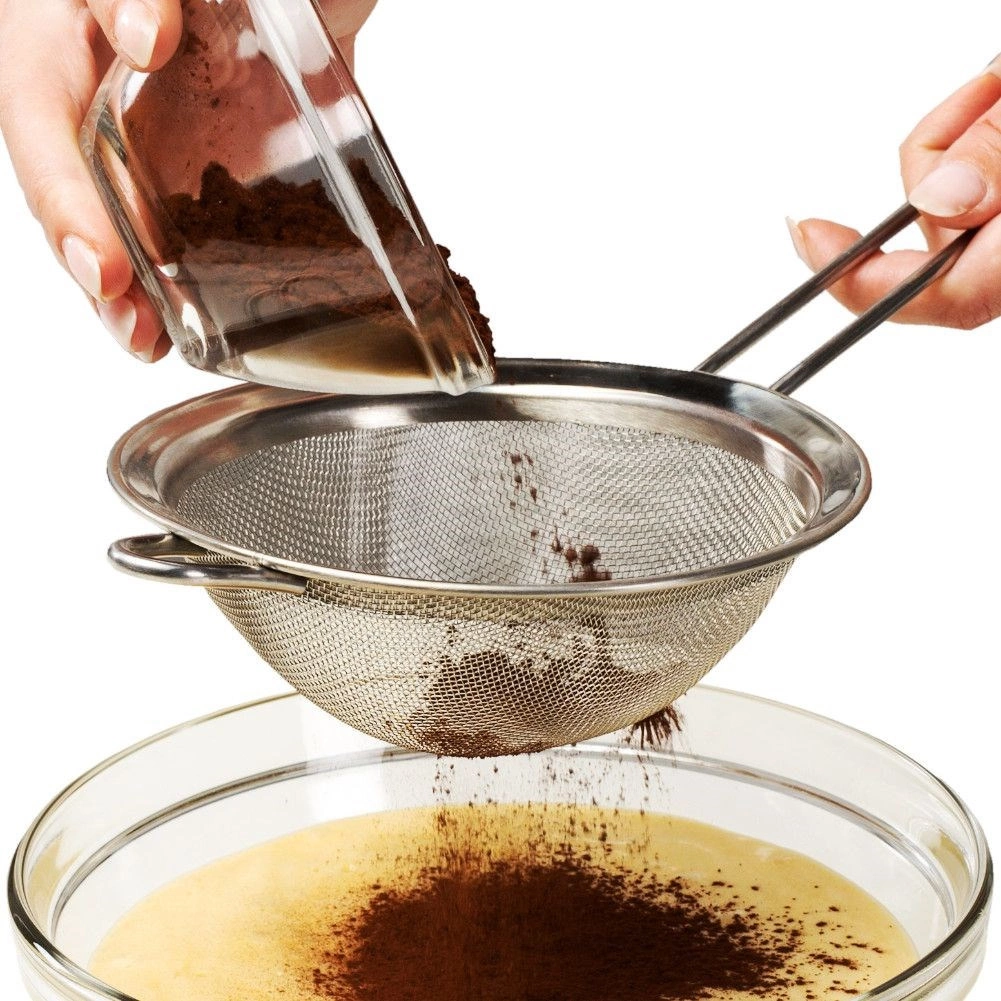 Passoire de cuisine pratique de 15 cm de diamètre en acier inoxydable 304 (18/8) de haute qualité pour la cuisson et la pâtisserie au quotidien. Grâce à sa maille fine et serrée, elle tamise la farine à la perfection, filtre le thé et les bouillons et saupoudre uniformément le sucre, le cacao ou la cannelle. Inox durable, poignée ergonomique, œillet de suspension et possibilité de lavage au lave-vaisselle pour un usage confortable et une longue durée de vie.