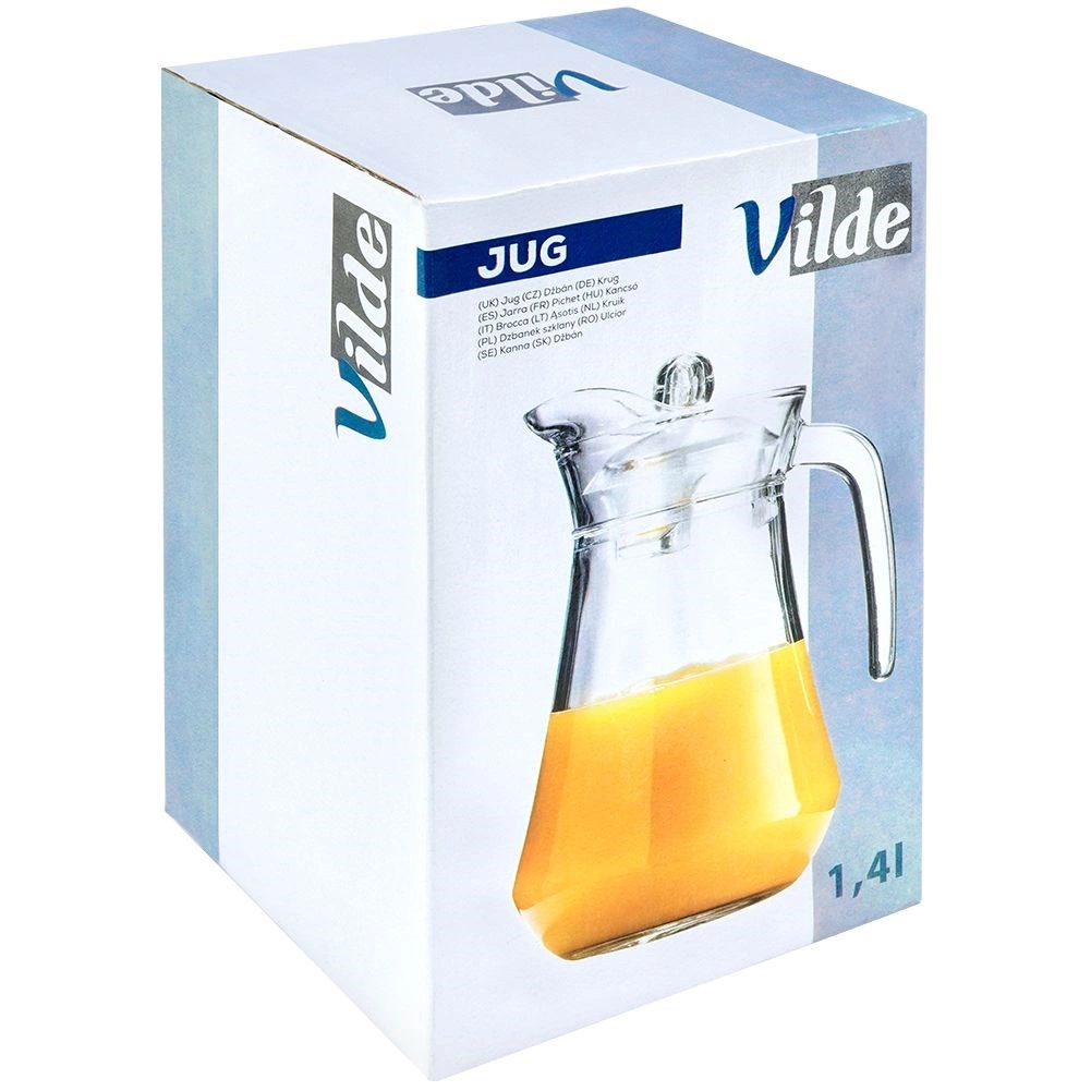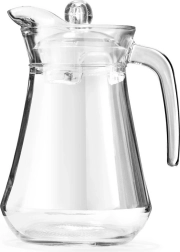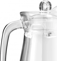 Élégante carafe en verre de 1,4 l avec couvercle pratique et poignée ergonomique pour un service confortable. Idéale pour l’eau, les jus, la limonade ou le thé glacé. Grâce à son bec verseur profilé, le service se fait sans gouttes, et le couvercle protège la boisson des impuretés et des insectes. Compatible lave-vaisselle et réfrigérateur, pour des boissons jusqu’à 60 °C.