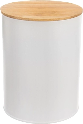 Boîte de cuisine en métal blanc avec couvercle en bambou 2,3 l