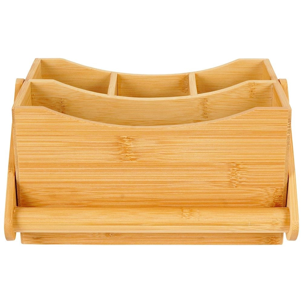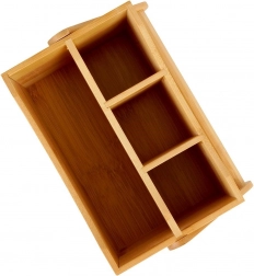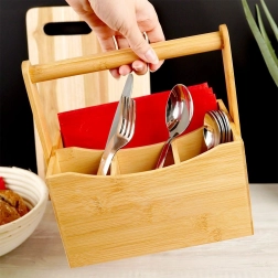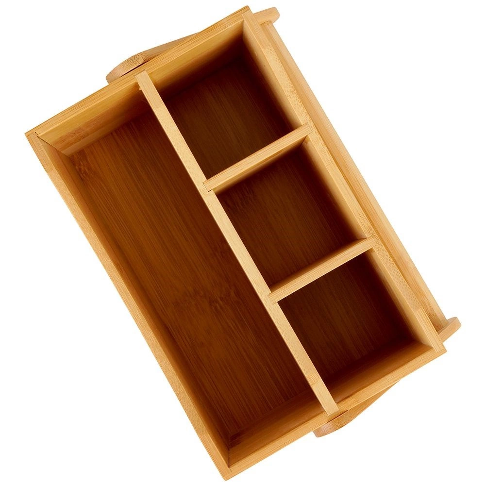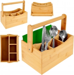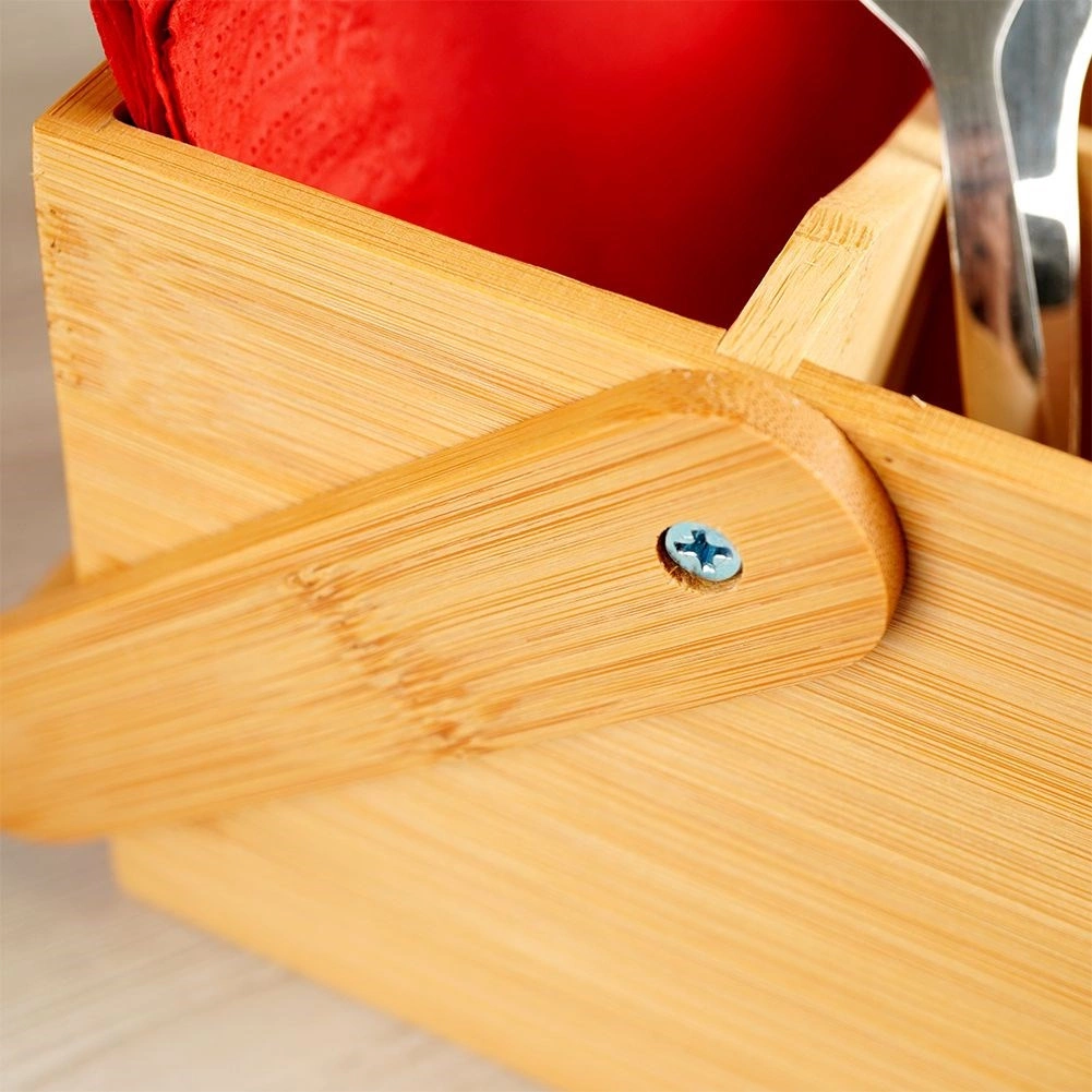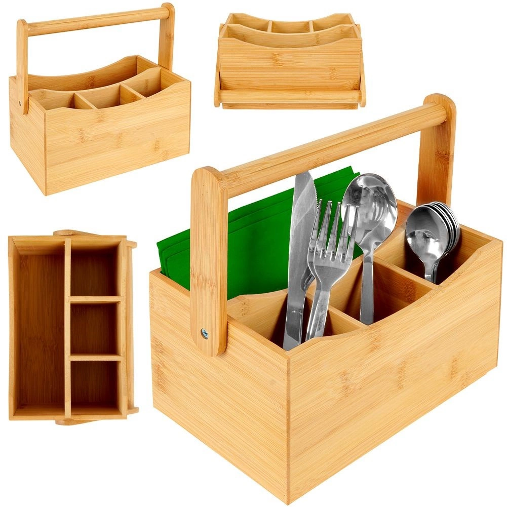 Organisateur en bambou en bois pour couverts, sauces et épices avec poignée