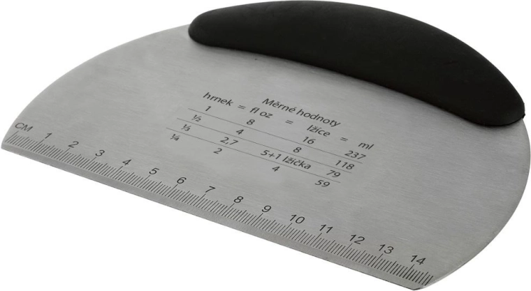Pratique spatule pâtissière avec fonction de coupe-pâte, idéale pour étaler les crèmes, lisser les glaçages et couper et hacher les ingrédients. Lame en acier inoxydable résistante, poignée antidérapante et règle intégrée pour un portionnement précis en font un auxiliaire indispensable dans chaque cuisine.