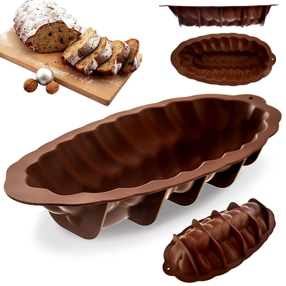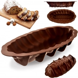 Moule ovale en silicone pour la cuisson de brioche tressée, de kouglof ou de pâtes battues et levées. Il est antiadhésif, légèrement flexible et résistant de -40 °C à +200 °C. Grâce à sa bonne répartition de la chaleur, il raccourcit le temps de cuisson et se nettoie facilement – compatible lave-vaisselle, micro-ondes, réfrigérateur et congélateur. Dimensions extérieures : 41 × 20 × 7,5 cm.