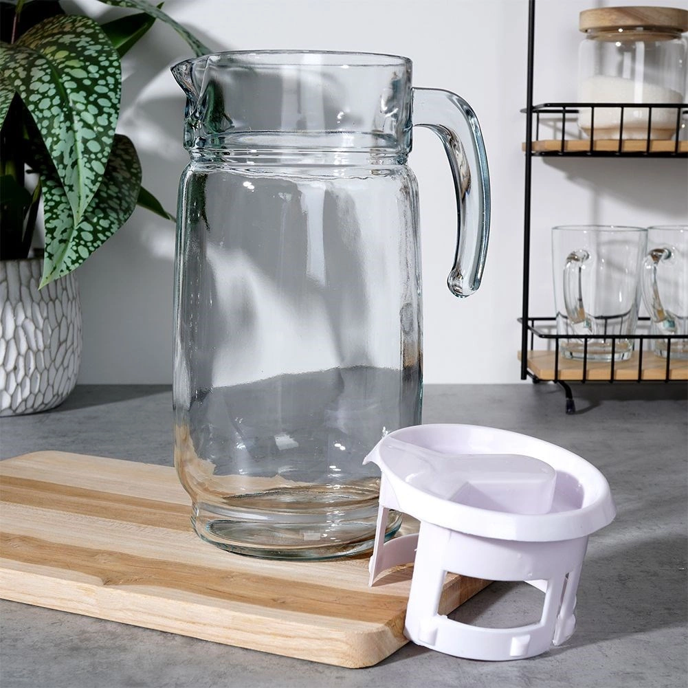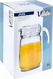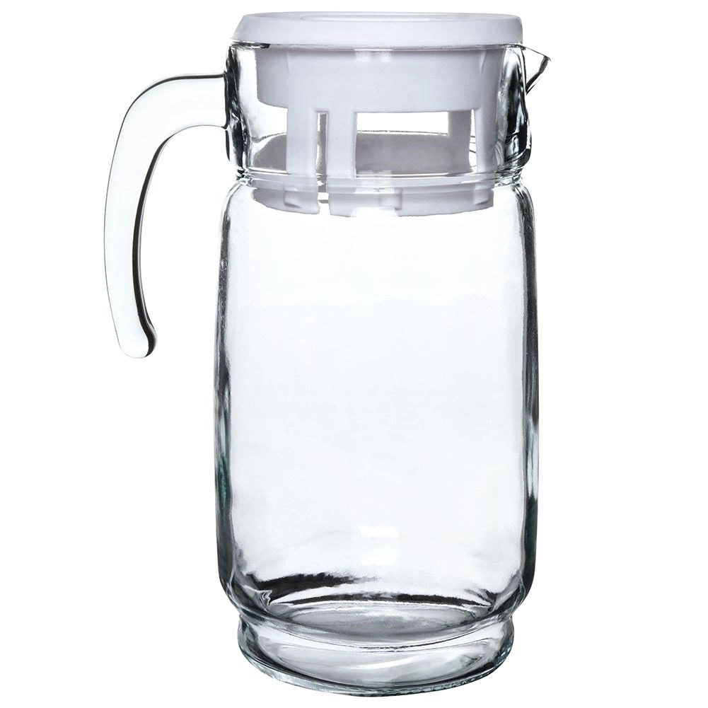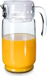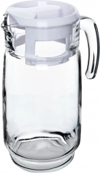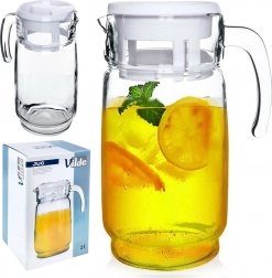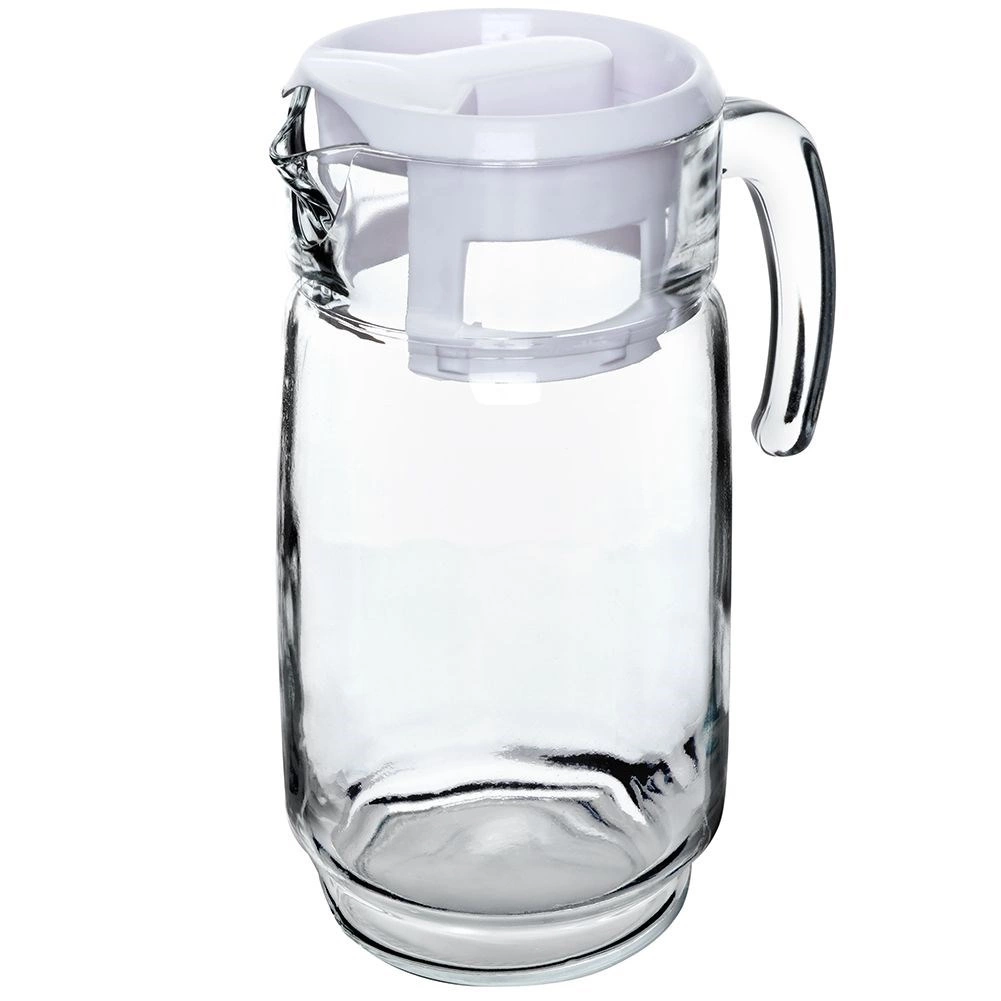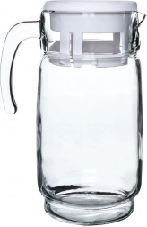 Élégante carafe en verre avec couvercle blanc d’une capacité allant jusqu’à 2 litres, idéale pour l’eau, les jus, les limonades et les thés glacés. Grâce à sa poignée robuste et à son bec verseur profilé, le service est confortable et sans gouttes. Le couvercle pratique protège le contenu de la poussière et des insectes, tandis que le verre transparent apporte une touche décorative à votre table.