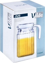 Élégant pichet en verre avec couvercle d’une capacité allant jusqu’à 650 ml, en verre transparent à structure rainurée. Il offre un versement confortable grâce au bec profilé, un couvercle pratique contre les impuretés et les insectes, et une utilisation polyvalente pour l’eau, les jus ou le thé glacé. Un accessoire stylé pour chaque table.