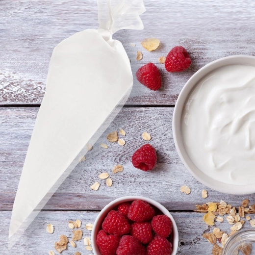Facilitez le décor des gâteaux, pâtisseries et cupcakes avec un lot de 50 poches à pâtisserie en rouleau. Le matériau transparent et souple assure une prise en main confortable et un meilleur contrôle du contenu, tandis que la taille de l’ouverture se règle aisément en coupant l’embout. Idéal pour crèmes, glaçages, appareils à base de blanc d’œuf, garnitures et pâtes salées.