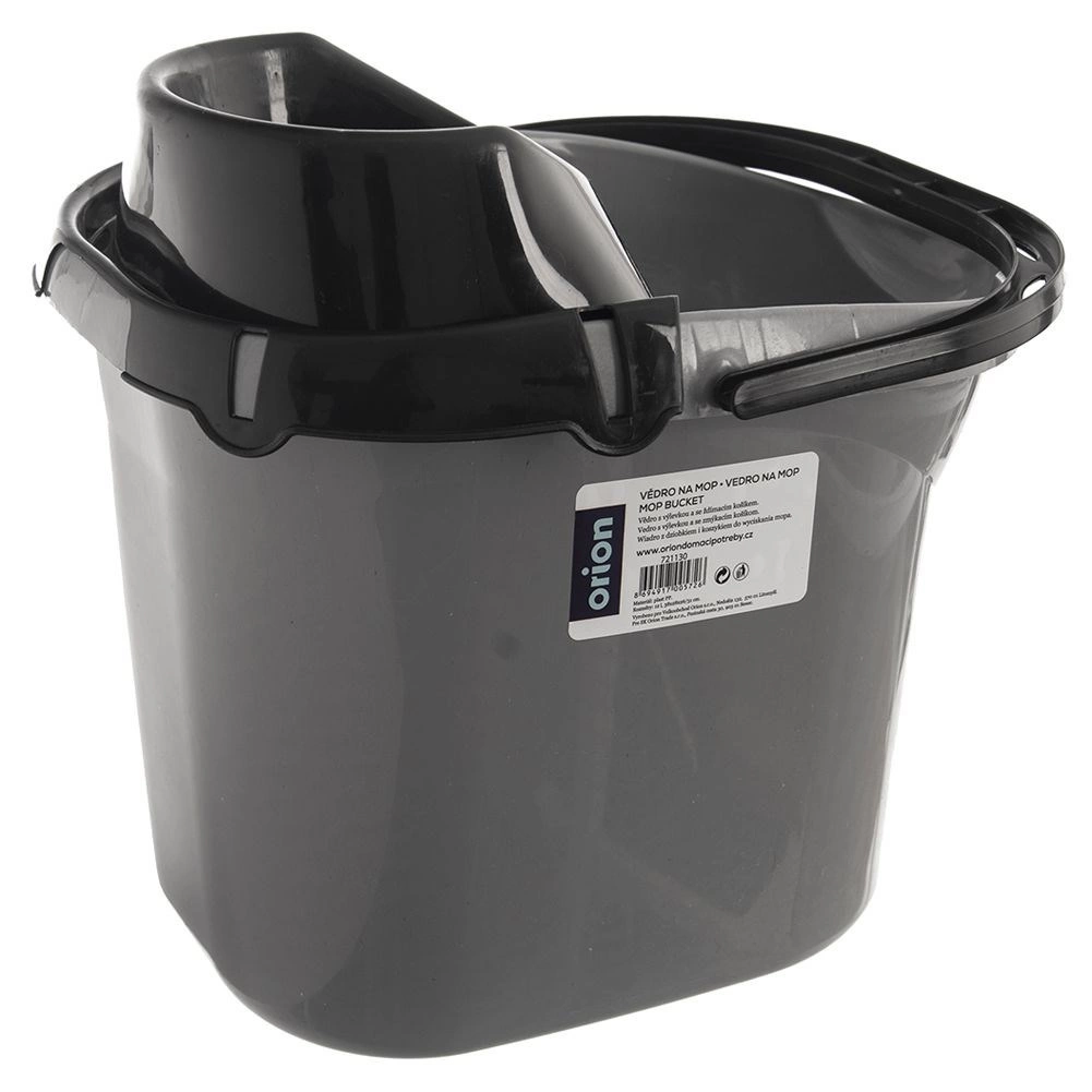 Seau gris, essoreur et anse noirs
