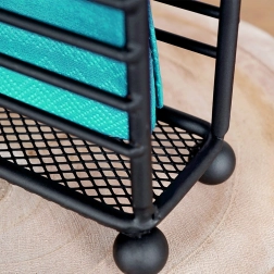 Grâce aux lattes latérales ouvertes et à la grille métallique, la manipulation des serviettes est rapide et confortable. Les pieds sphériques antidérapants assurent la stabilité même au vent, ce qui rend le porte-serviettes adapté à l’intérieur comme à l’extérieur – terrasse, balcon et jardin. Son design minimaliste se marie facilement avec tout style de dressage.