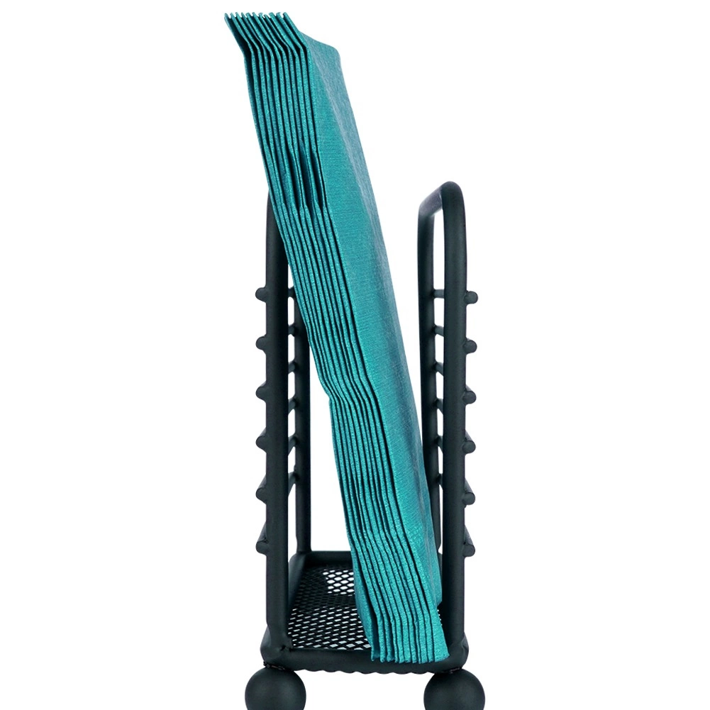 Porte-serviettes élégant et pratique en métal de qualité, finition noir mat, pour garder vos serviettes toujours à portée de main et bien en place. Grâce à sa structure stable et à son design ouvert, les serviettes se chargent et se retirent facilement. Convient à la maison comme en restauration, s’intègre parfaitement à un intérieur loft moderne comme à une table de jardin.