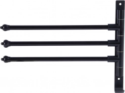 Élégant et fonctionnel, ce porte-serviettes à trois bras pivotants indépendants permet d’espacer les textiles pour une meilleure circulation de l’air et un séchage plus rapide. La finition noire mate apporte une touche moderne et industrielle à la salle de bain et se marie facilement avec d’autres accessoires.
