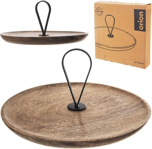 Élégant plateau à étages en bois de manguier de 30,5 cm de diamètre avec une poignée métallique pratique, idéal pour servir des desserts, des fruits et des snacks. Il combine un design loft industriel, une stabilité et un transport facile, parfait aussi bien pour la table de fête que pour un usage quotidien.