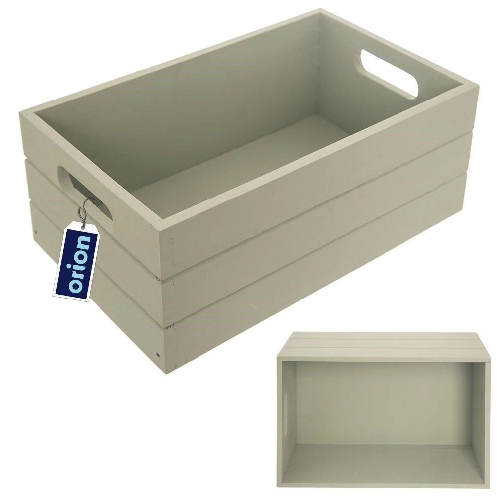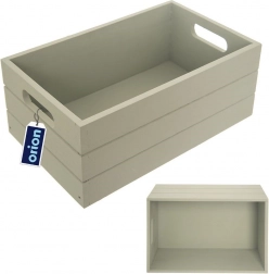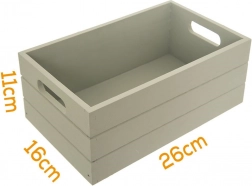 Caisse en bois pratique et élégante de dimensions 26 × 16 × 11 cm pour un rangement clair des petits objets à la maison comme au bureau. Fabriquée en bois résistant, elle présente une surface vert pastel clair, un haut ouvert pour un accès facile et des poignées latérales pour un transport confortable. Idéale pour cosmétiques, fournitures de bureau, aliments, épices, fruits et légumes et comme élément décoratif dans tout intérieur.