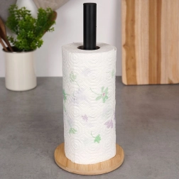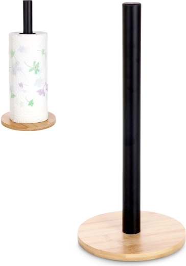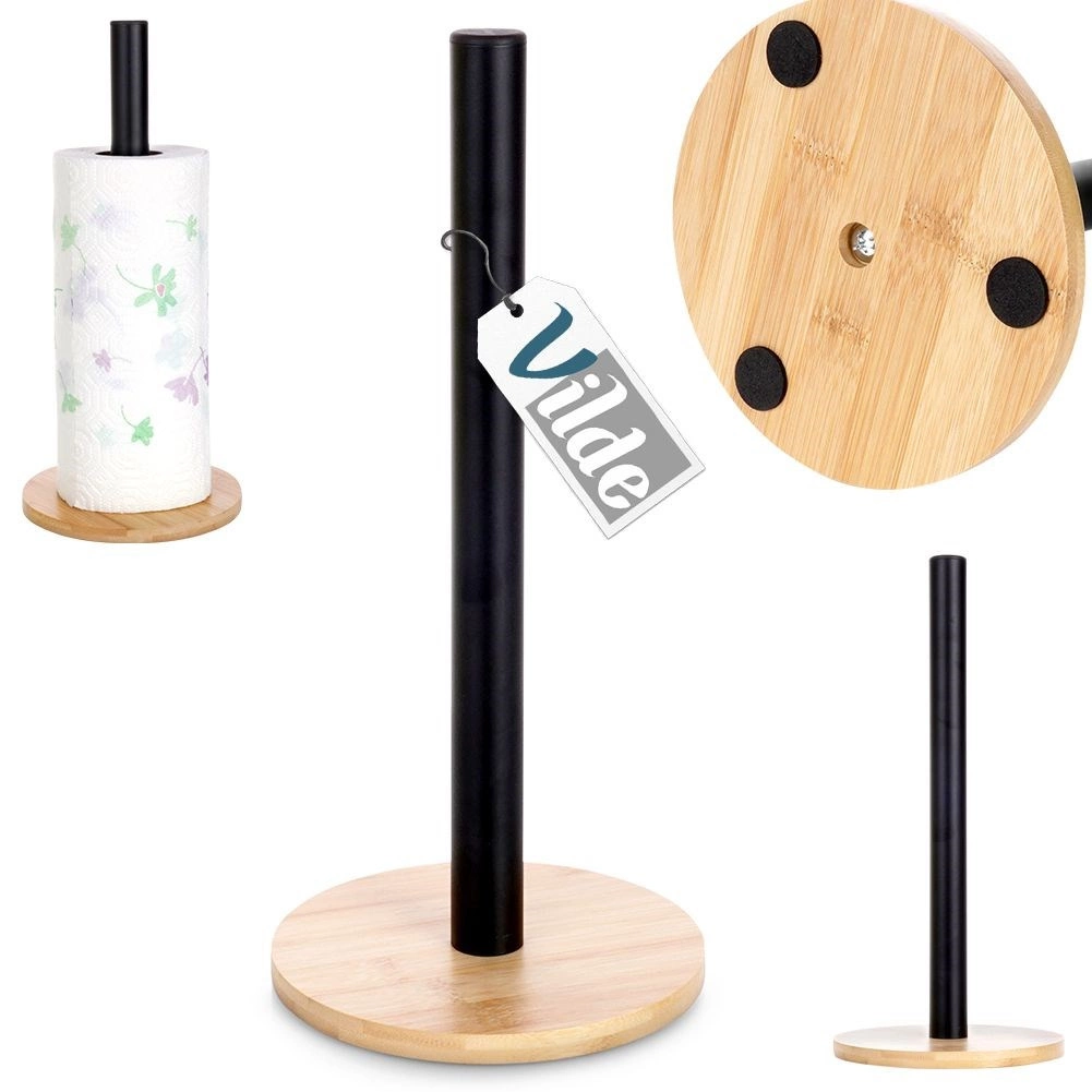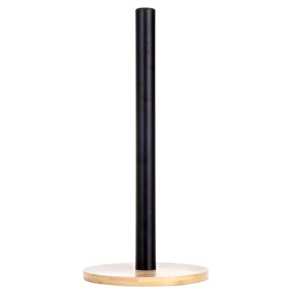 Élégant support pour essuie-tout avec base de 15 cm de diamètre et hauteur de 32,5 cm, combinant métal noir mat et bois de bambou. Il offre une solution stable, pratique et universelle pour détacher facilement les feuilles en cuisine, salle de bain ou bureau. Grâce aux patins antidérapants, il protège le plan de travail des rayures et s’intègre parfaitement au style LOFT moderne.