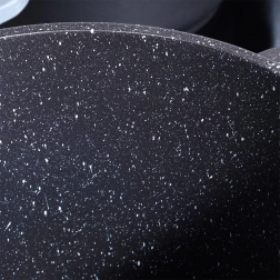 La couche de granit résistante est antiadhésive, résistante aux rayures et aux hautes températures. Cuisinez sainement avec un minimum de matière grasse et sans attacher, sans PFOA ni PTFE.