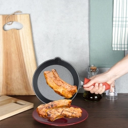 Un manchon en silicone rouge pour la poignée est inclus pour une prise confortable et sûre lors de la cuisson comme du service.