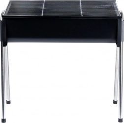 Ce barbecue portable combine des dimensions compactes avec une construction robuste pour des grillades pratiques en voyage comme à la maison. Ses dimensions monté sont de 48 × 33 × 46 cm, et une fois plié seulement 48 × 33 × 12 cm, il se range donc aisément dans le coffre de la voiture ou un placard.