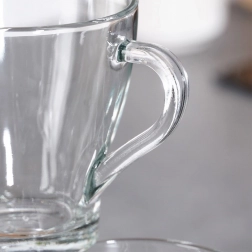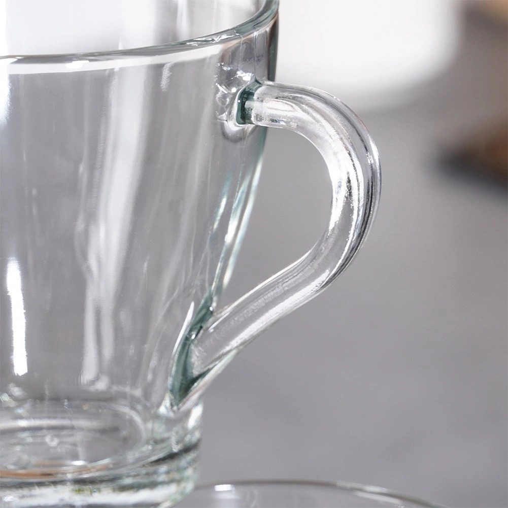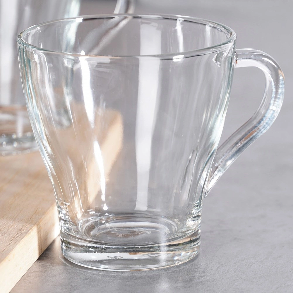 Élégant set de 6 verres avec anse d’une capacité de 250 ml pour un usage quotidien comme pour les occasions spéciales. Fabriqués en verre épais de haute qualité, adaptés aux boissons chaudes et froides, avec une anse ergonomique pour une prise en main sûre. Les verres sont transparents pour une présentation soignée et faciles à entretenir – compatibles lave-vaisselle et micro-ondes.