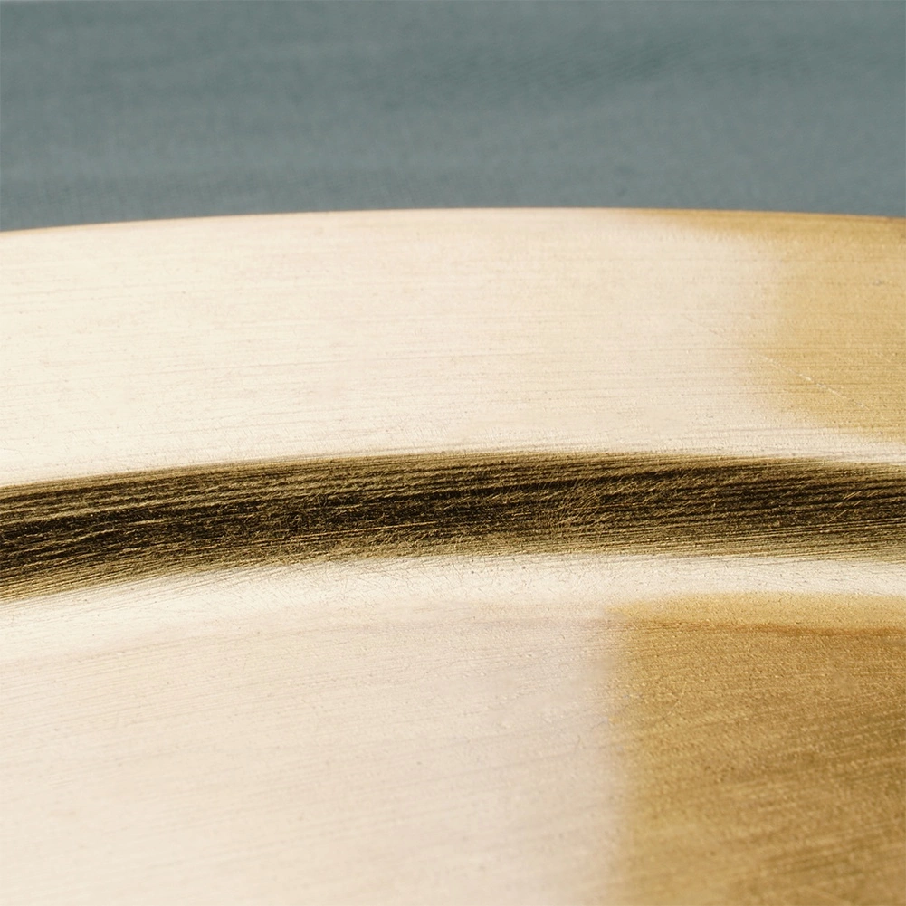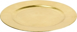 Ce dessous décoratif au fini doré moderne est idéal comme assiette de présentation ou comme base pour des compositions décoratives avec bougies ou fleurs. Sa forme ronde classique avec large bord met en valeur le service de table et protège la nappe de la chaleur et des impuretés.