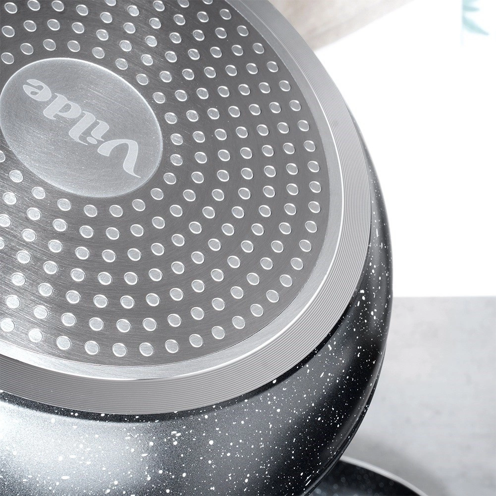 Le revêtement pierre de haute qualité empêche les aliments d’attacher et permet de cuisiner avec très peu d’huile. Facile à nettoyer et durable pour un usage quotidien.