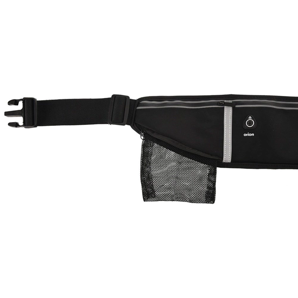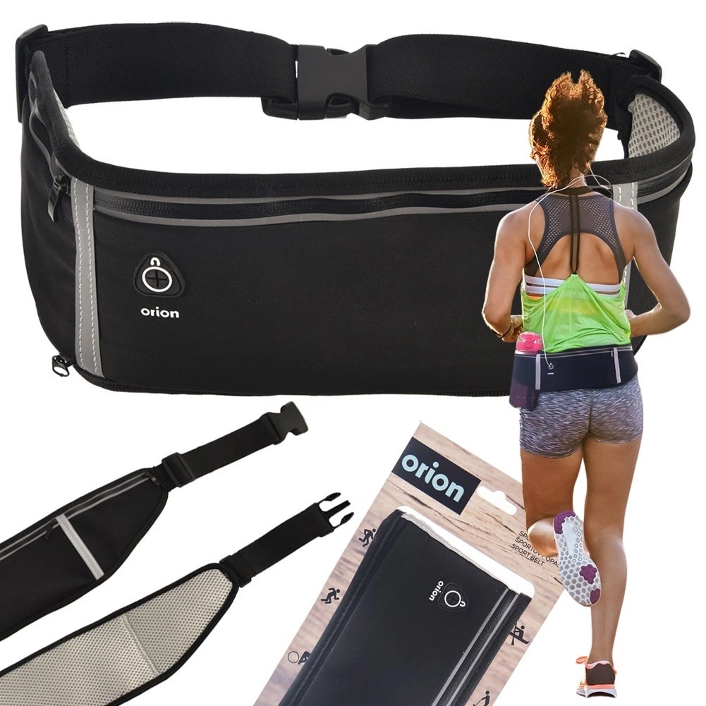 Ceinture de course pratique pour transporter en toute sécurité et confortablement de petits objets lors de la course, de la marche ou à vélo. Elle offre un matériau imperméable, trois compartiments zippés, un passage pour écouteurs, des éléments réfléchissants pour une meilleure visibilité et une sangle élastique réglable pour un ajustement parfait.