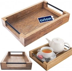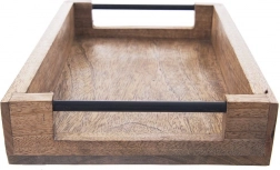 Découvrez un plateau élégant en bois massif de manguier, remarquable par son veinage naturel et sa longue durabilité. Grâce à ses rebords relevés et à sa construction stable, vous transportez facilement et en toute sécurité café, thé, pâtisseries ou petits encas. Les poignées métalliques noires assurent une prise ferme et une manipulation confortable.