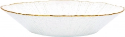 Élégant bol en verre avec un bord doré et une texture délicate, idéal pour servir des salades, des accompagnements et des desserts. Il a une capacité de 500 ml, des dimensions de 20,5 × 20,5 × 4 cm et, grâce au verre clair de haute qualité avec effet cristal, apporte à votre table une allure luxueuse. Pour une longue durée de vie, nous recommandons le lavage à la main.