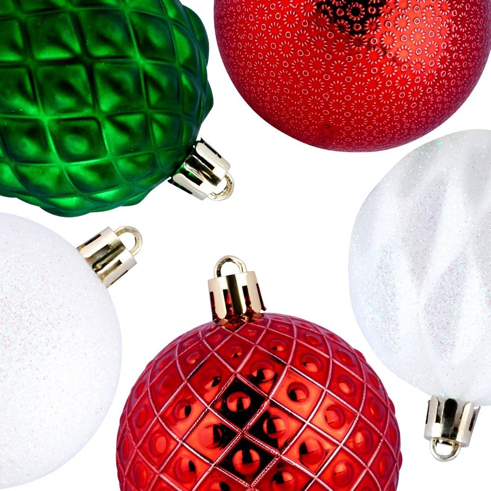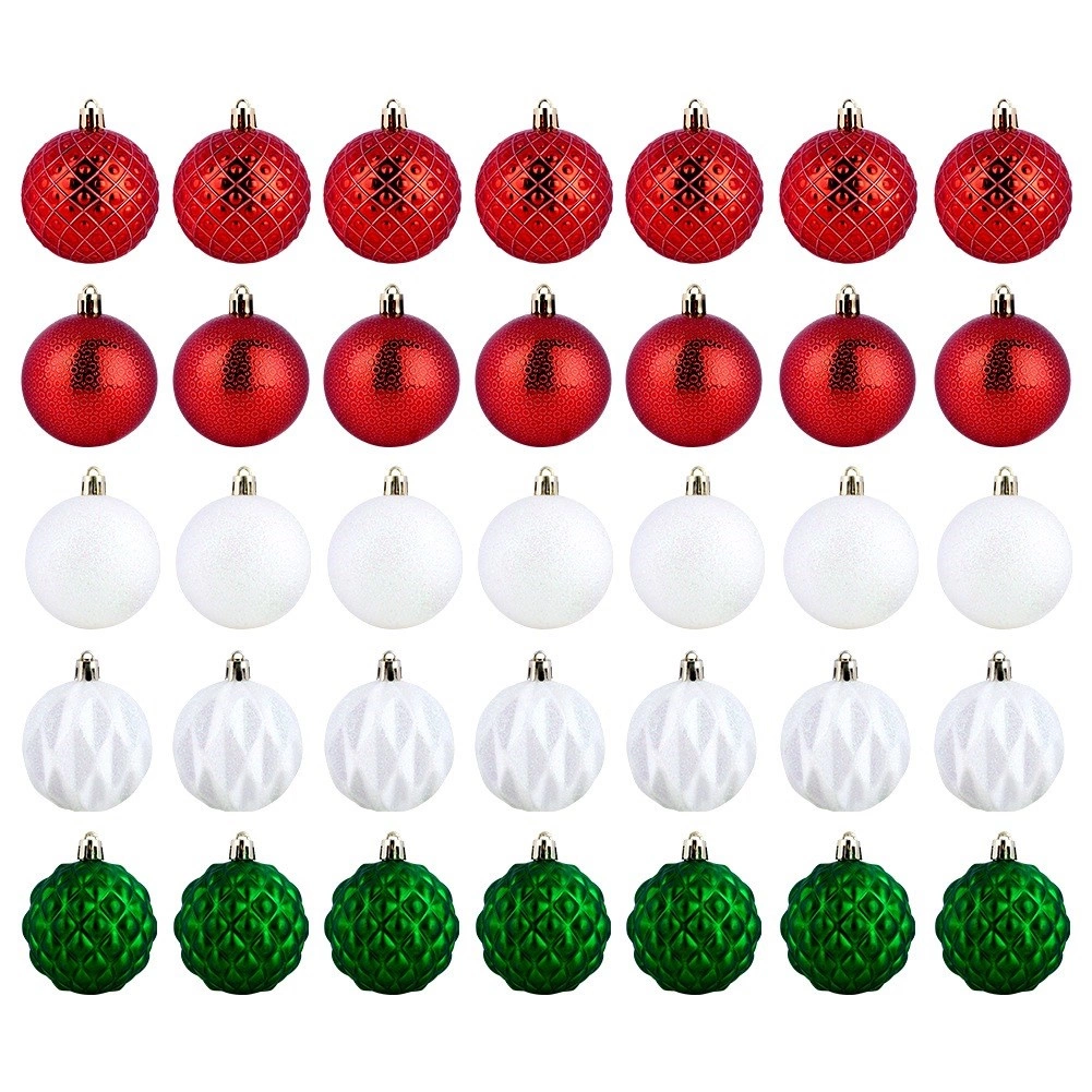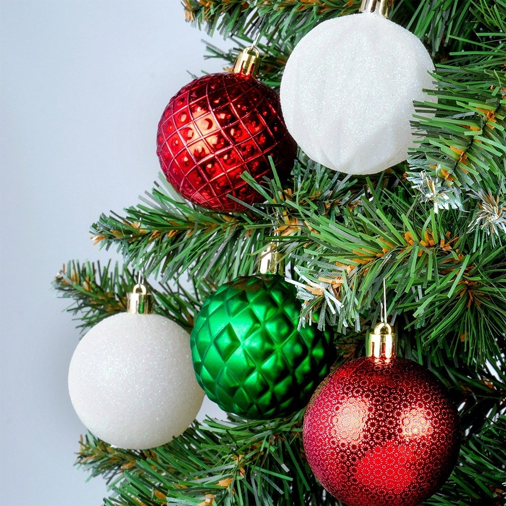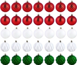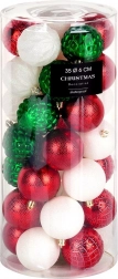 Set de boules de Noël incassables 6 cm, rouges, vertes et blanches, 35 pièces