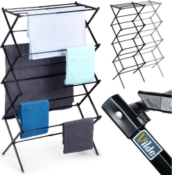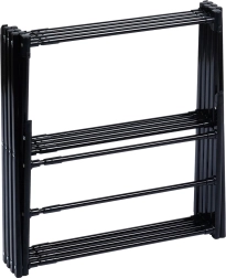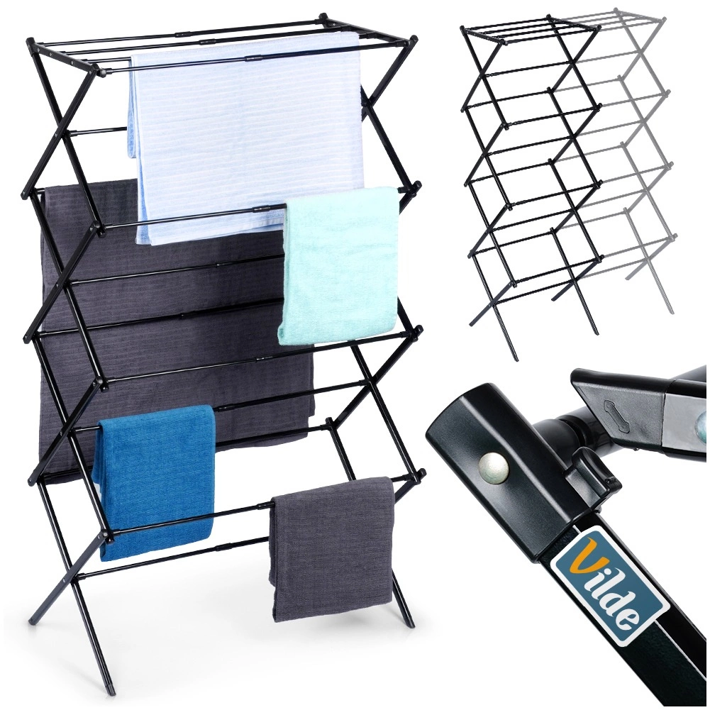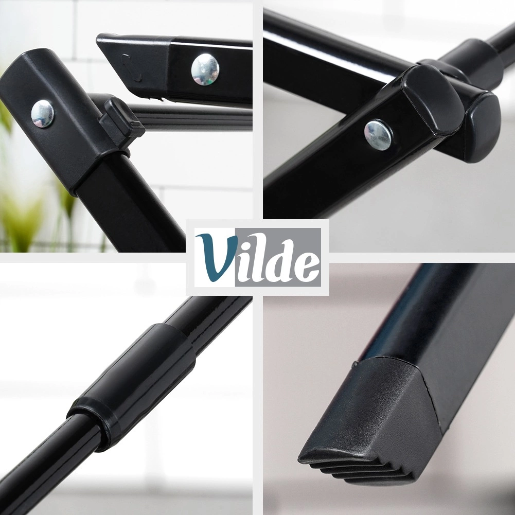 Le séchoir à linge vertical pratique VILDE est un excellent choix pour les petits appartements comme pour les maisons familiales. Grâce à sa largeur télescopique de 43–75 cm, vous adaptez facilement la taille à l’espace et à la quantité de linge. Sa structure métallique robuste avec revêtement noir époxy garantit une longue durée de vie et un look moderne.