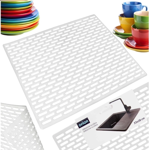 Ses dimensions universelles 33 × 28 cm et sa couleur blanche neutre s’harmonisent facilement avec la plupart des éviers et styles de cuisine. Le tapis est résistant à l’eau, facile à nettoyer et sa structure antidérapante augmente la sécurité lors du lavage.