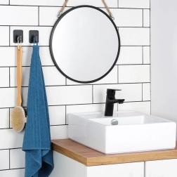 Des crochets minimalistes avec base rectangulaire apportent une solution fiable pour suspendre les accessoires du quotidien. La conception résistante en plastique léger noir s’accorde parfaitement aux intérieurs modernes et grâce à la mousse adhésive 3M assure une forte adhérence sur le verre, le miroir, l’émail et le mobilier.
