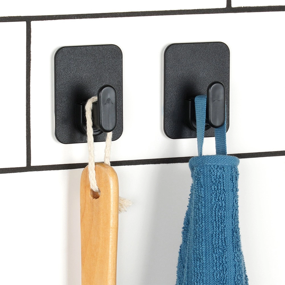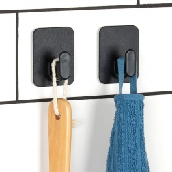 Des crochets noirs modernes avec base rectangulaire s’intègrent à tout intérieur et économisent de la place dans la salle de bain comme dans la cuisine.