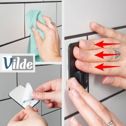 L’installation est rapide : il suffit de nettoyer la surface plane, de retirer le film protecteur et de presser fermement. Les crochets conviennent à la cuisine, à la salle de bain et à l’entrée – pour des serviettes, gants de toilette, torchons, gants ou vêtements légers. Produit original VILDE, fabriqué selon les normes européennes.