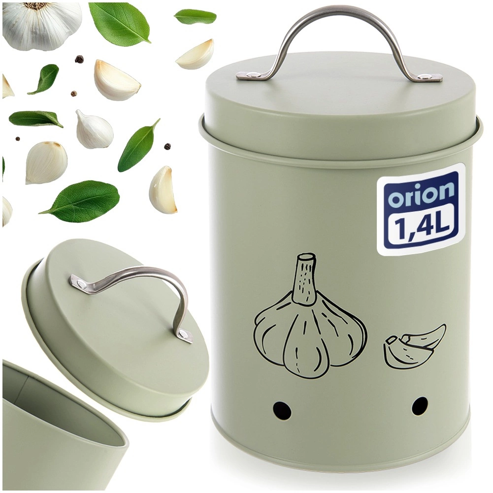 Grâce à ses dimensions compactes, le récipient se place facilement sur le plan de travail ou dans le garde-manger. La finition vert pastel avec une poignée argentée s’intègre parfaitement aux cuisines modernes comme rustiques. Le motif d’ail facilite l’identification rapide du contenu parmi les autres boîtes.
