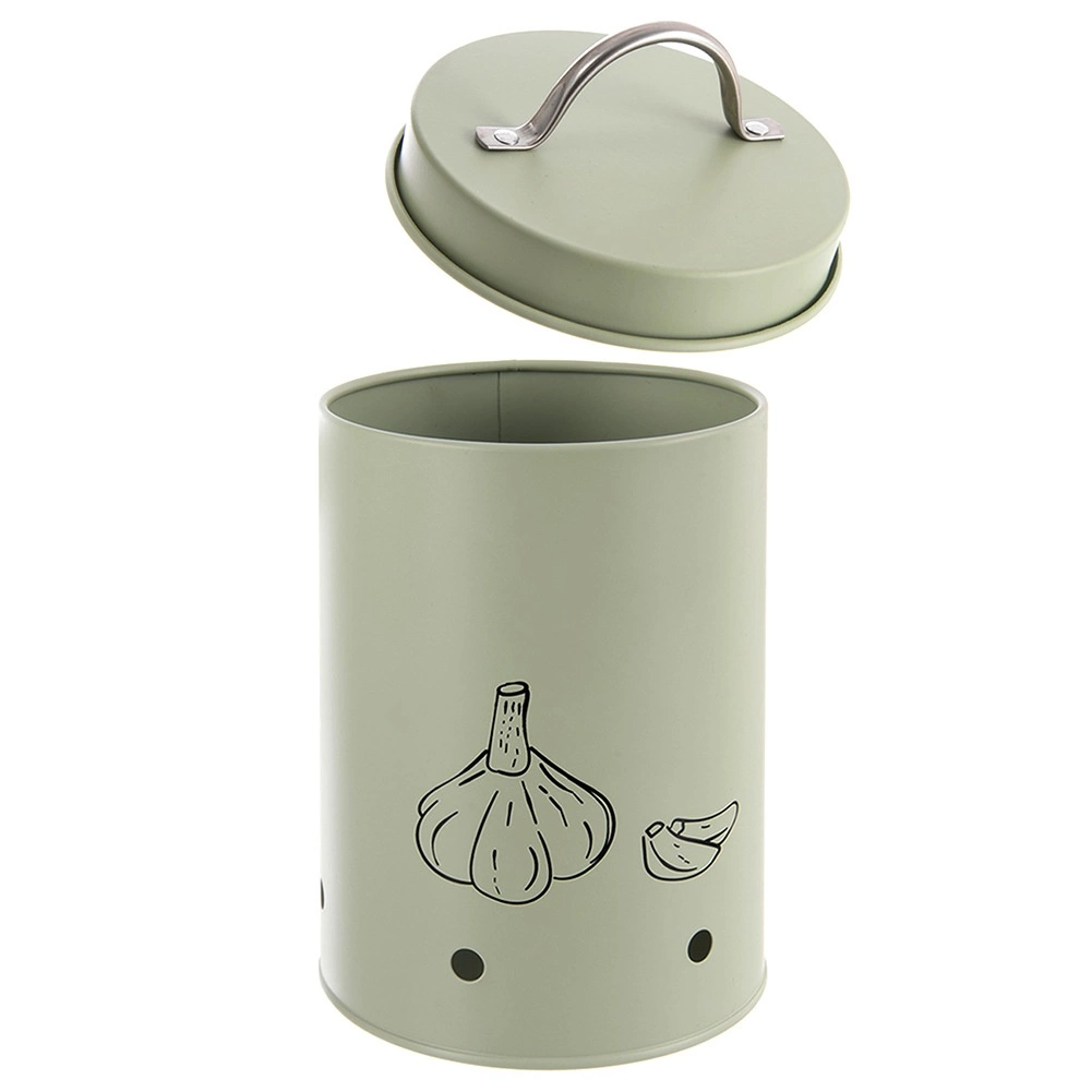 Récipient élégant et pratique pour le stockage des légumes et des fruits, idéal notamment pour l’ail. Grâce à un volume de 1,4 l, une ventilation efficace et un couvercle avec poignée confortable, il garde les aliments frais plus longtemps. Fabriqué en métal résistant de couleur vert pastel, il convient aussi comme élément décoratif de la cuisine.