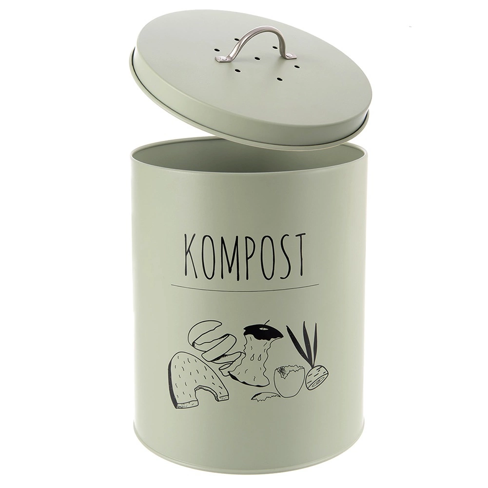 Composteur de cuisine élégant d’une capacité de 8 l avec filtre à charbon remplaçable, qui absorbe efficacement les odeurs et permet un tri facile des biodéchets directement dans la cuisine. Il est fabriqué en métal résistant de couleur vert pastel, dispose d’un couvercle pratique limitant l’accès des insectes et d’une poignée confortable pour le transport. Idéal pour la cuisine, le balcon et la terrasse.